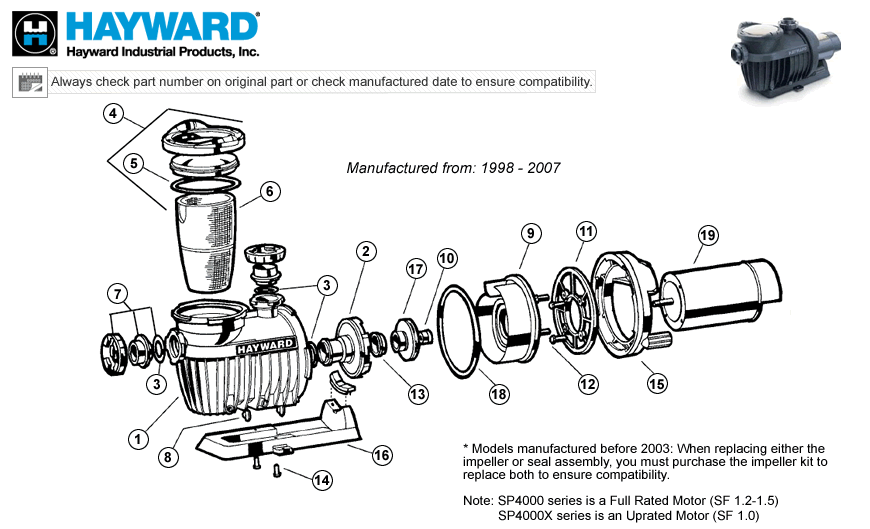 Hayward Northstar Mfg From 1998 2007 Pump Parts