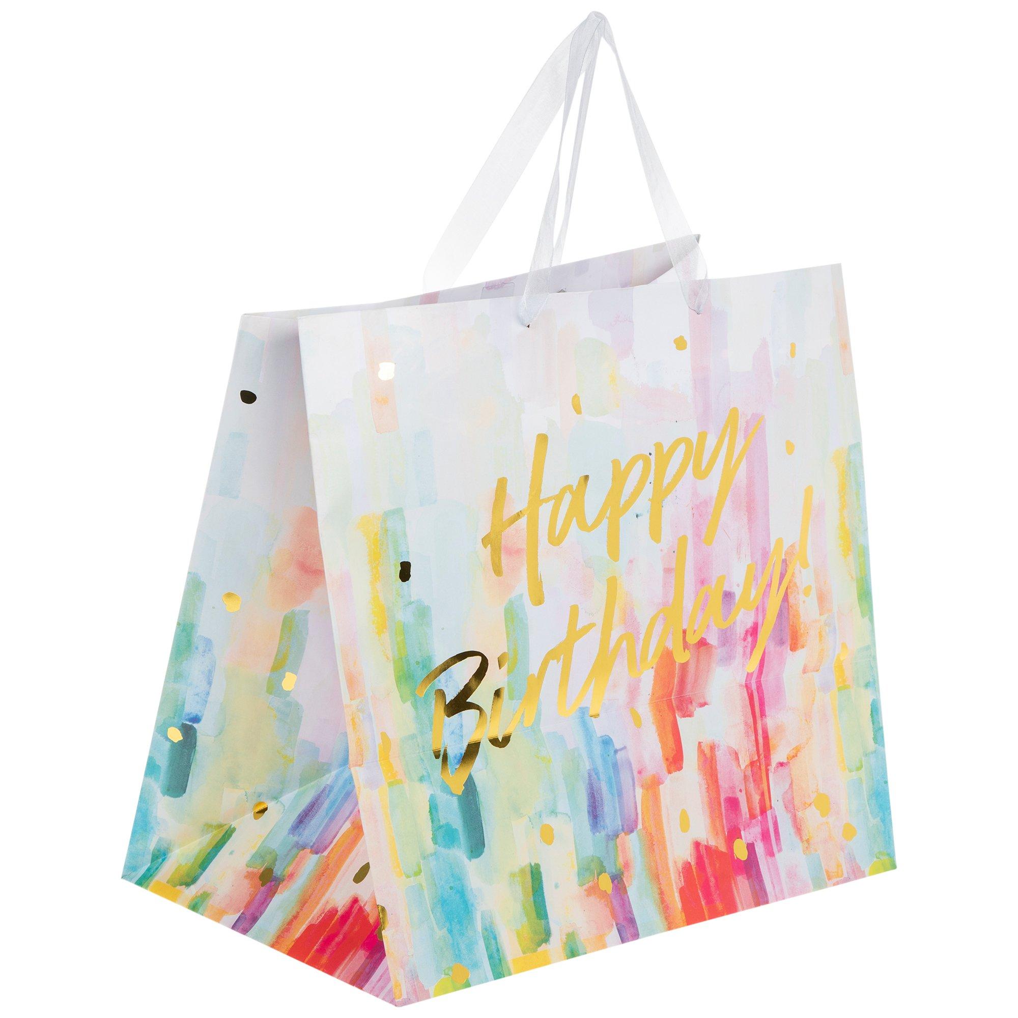 Amazon Com 13 Large Happy Birthday Gift Bag With Handles Tissue Paper And Card Colorful Rainbow Health Household